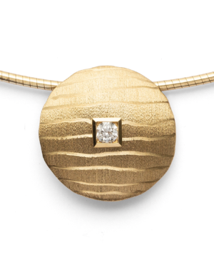 44495 750/- Bastian Pendant, specially textured, 0.03ct W-SI