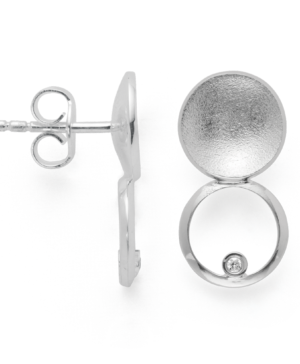 42830 925 sterling silver stud earrings, scratch-matte finish, diamonds 0.02ct W-SI