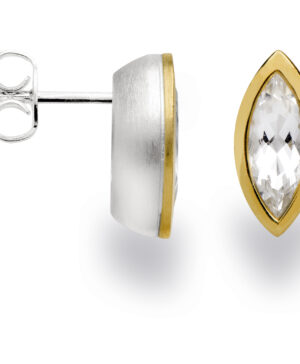 23521 925 sterling silver stud earrings, part gold-plated, rhodium-plated matte/polished mountain stone
