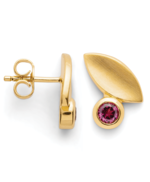 46870 925 sterling silver stud earrings, gold-plated, matte, rhodolite 0.40ct