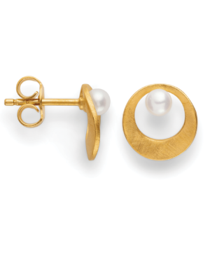 46940 925 sterling silver stud earrings, gold-plated, matte finish, cultured pearls 0.56ct