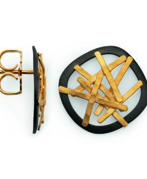48600 925 sterling silver stud earrings, partially gold-plated, black-rh, matte
