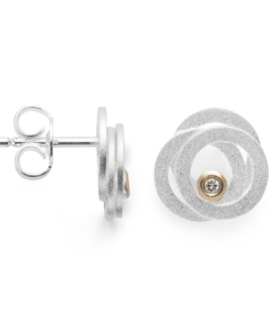46210 925 sterling silver stud earrings, part gilded matte/polished, 0.02 ct