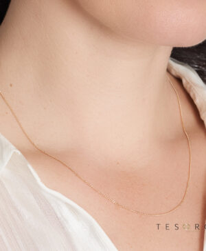 040FD 9Y Diamond Cut Squared Edge Forzatina 1.3mm Cable Link Chain, 45cm.