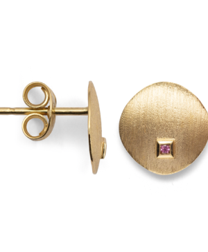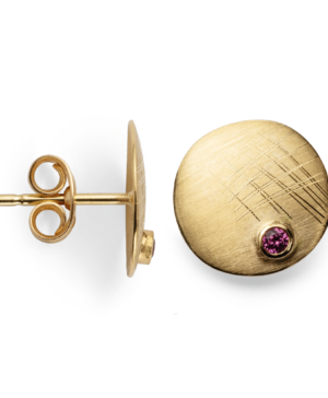 37825 750/- Stud earrings, matte/brushed, rhodolite 0.02ct