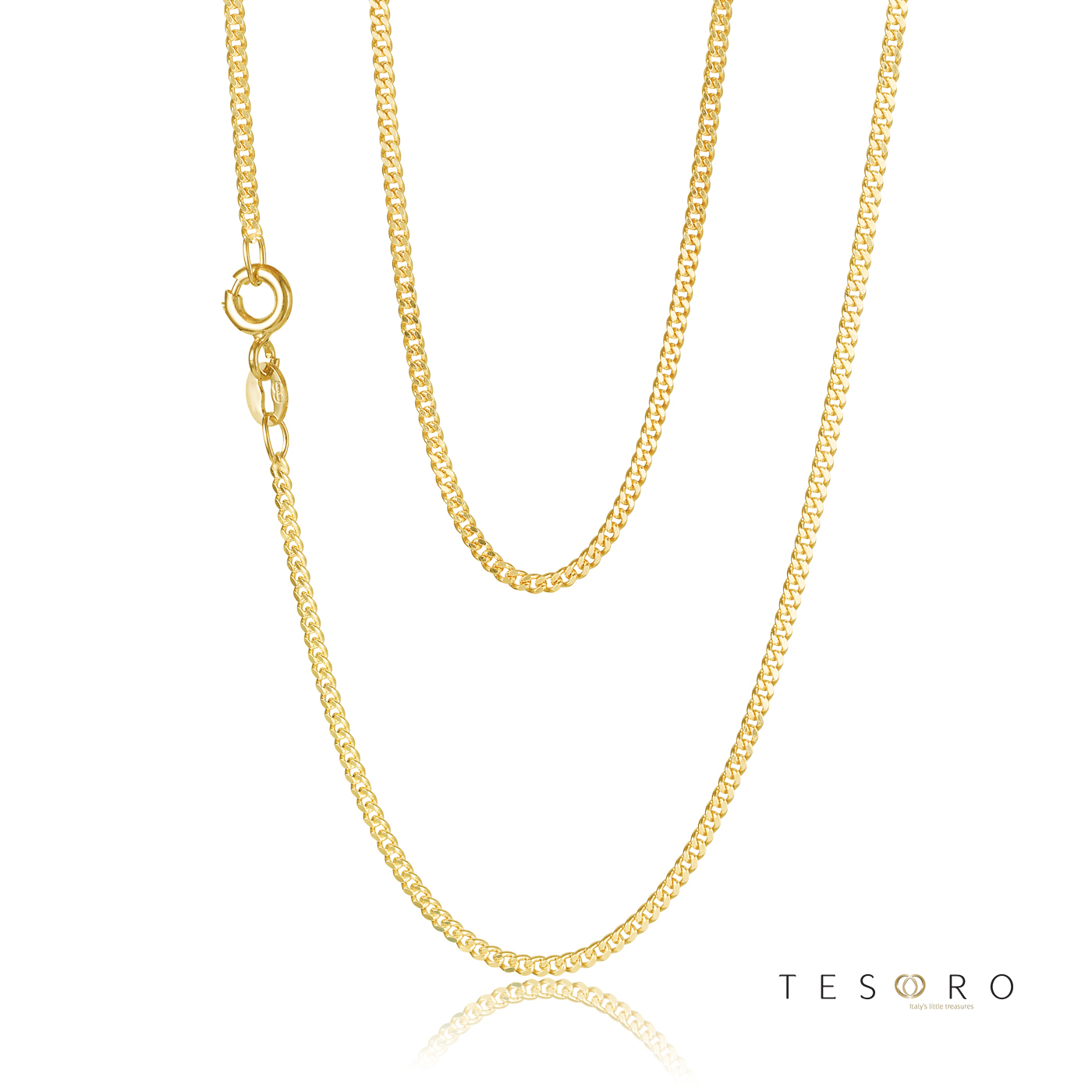 Worn with or without a pendant, this Grumetta curb chain is always the right style choice. A generous 50cm in length, Tesoro’s artisan jewellers has brought this design to life by diamond cutting the edges on both sides of the chain, creating a distinctive fluid look.