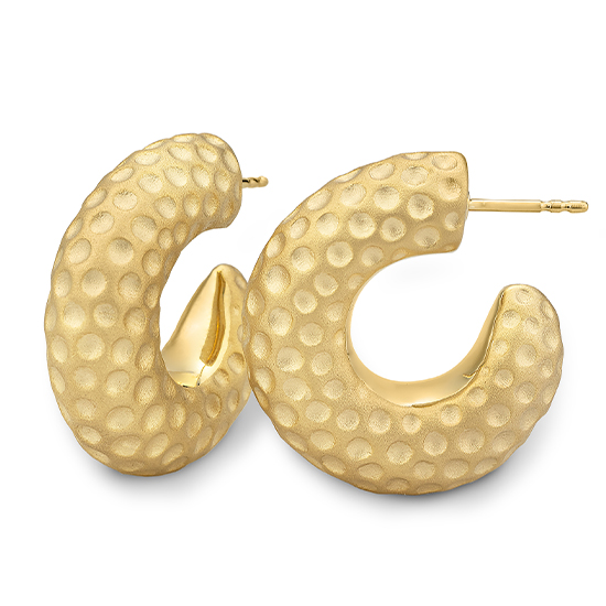 06/08503-5 925/- Yellow Gold Plated Silver Satin With Indented Round Decorative Pattern Inserts Earrings