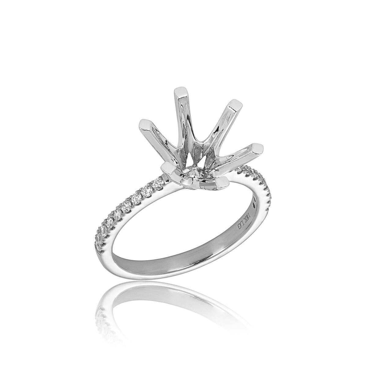 061-00269-WG 18WG Lab Grown RBC 18 = 0.20ct F/G/H VS 6 Claw Semi Mount With Claw Set Side Stones To Take 3.50ct RBC Ctr