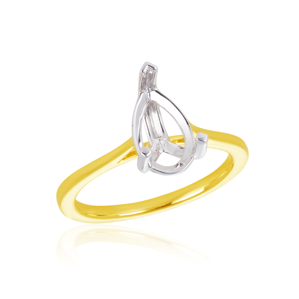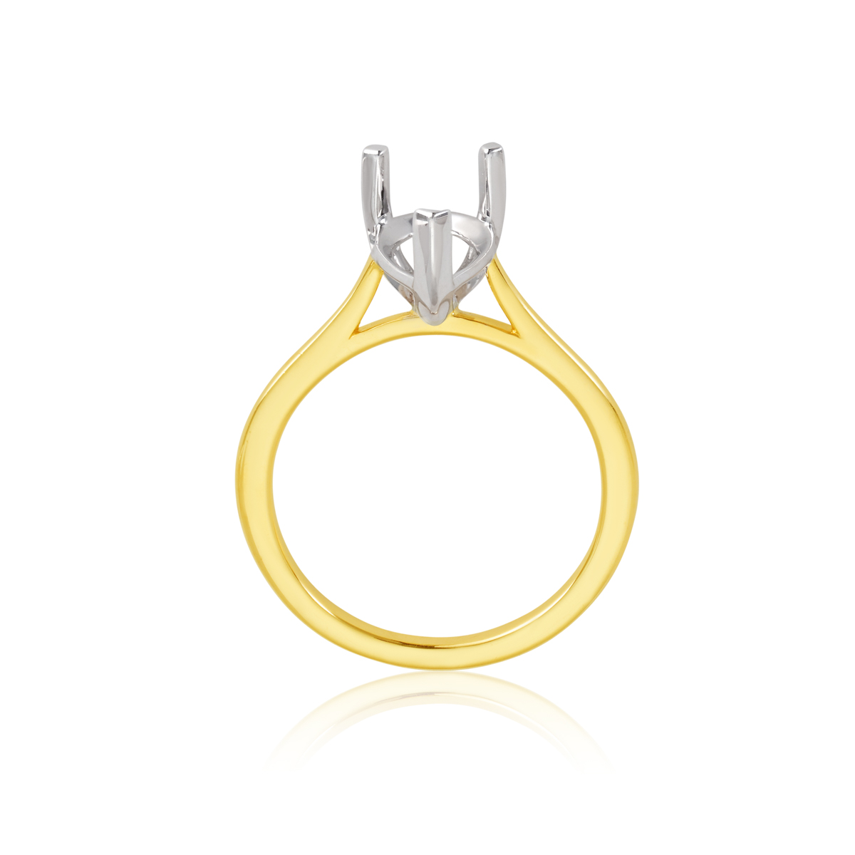 061-00359 750/- Yel-White Tapering Cathedral Solitaire To Take 1.50ct Pearshape Ctr Stone – Yellow Gold Band, White Gold Setting – Size “M”