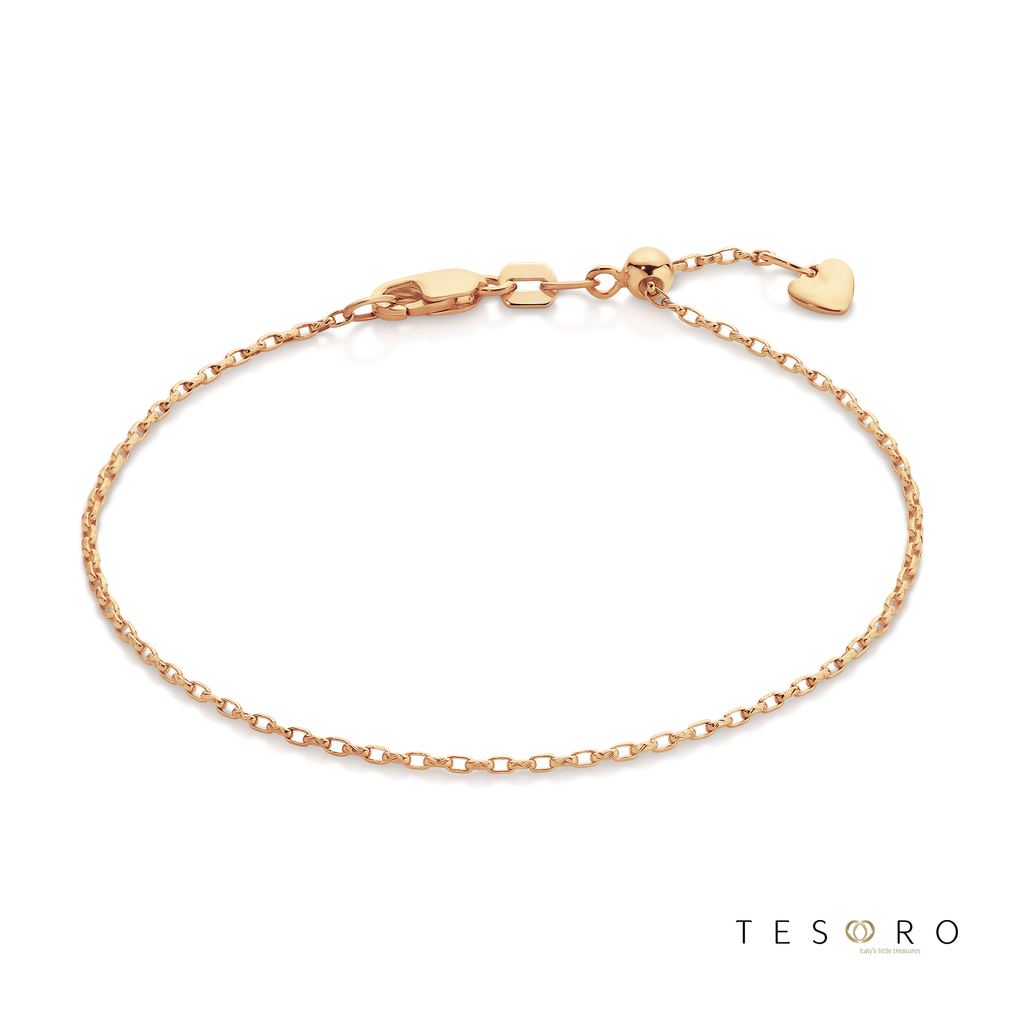 Contemporary and versatile , the Abruzzo adjustable bracelet embodies a delicate and contemporary design. Featuring Tesoro’s signature adjustable element, this rose gold, oval diamond cut belcher style bracelet is your perfect everyday companion.