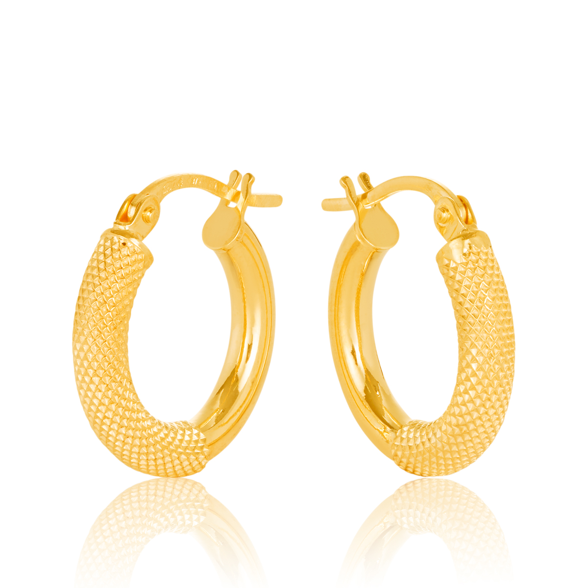 10OBC604-99 9Y Round 10mm Diameter Half Mesh Half Plain Hoop Earring