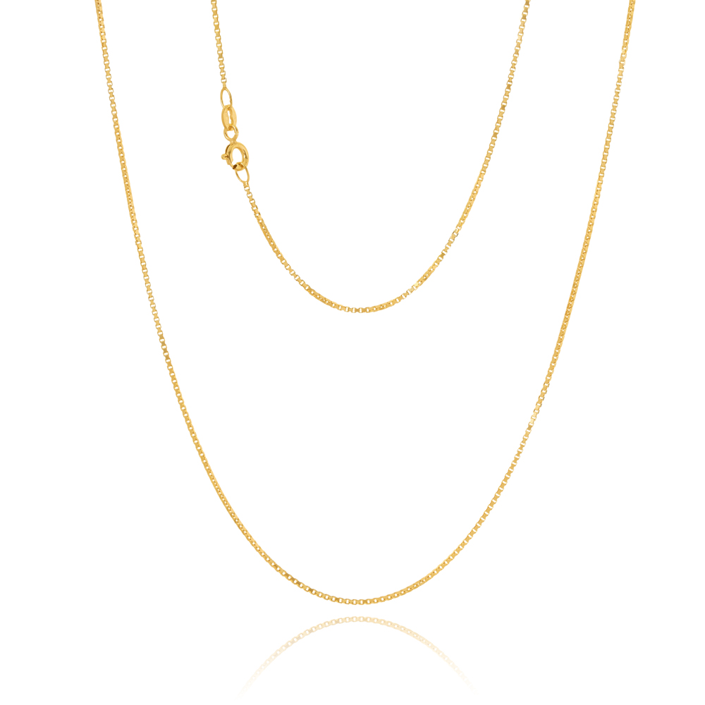 An Italian classic, the Veneziana box chain is perfect to hang your favourite pendant while exuding a smooth and sleek appearance. Created in 9 carat yellow gold, the defined edges and concaved centre ensures light is reflected throughout the chain.