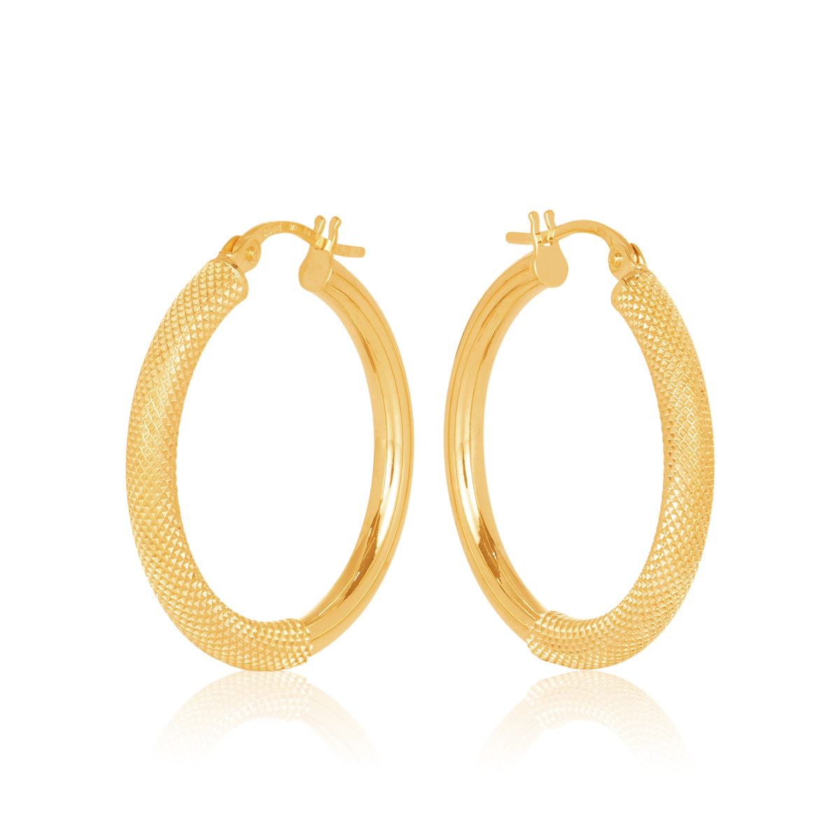 20OBC604-99 9Y Round 20mm Diameter Half Mesh Half Plain Hoop Earring