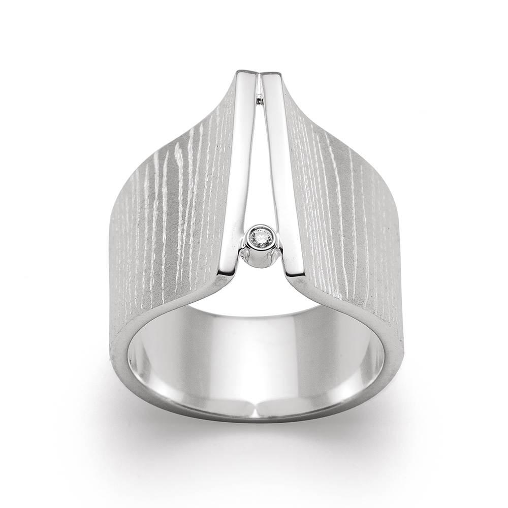 2434056 925 sterling silver ring, matte/brushed/polished, 0.02ct diameter, W-SI