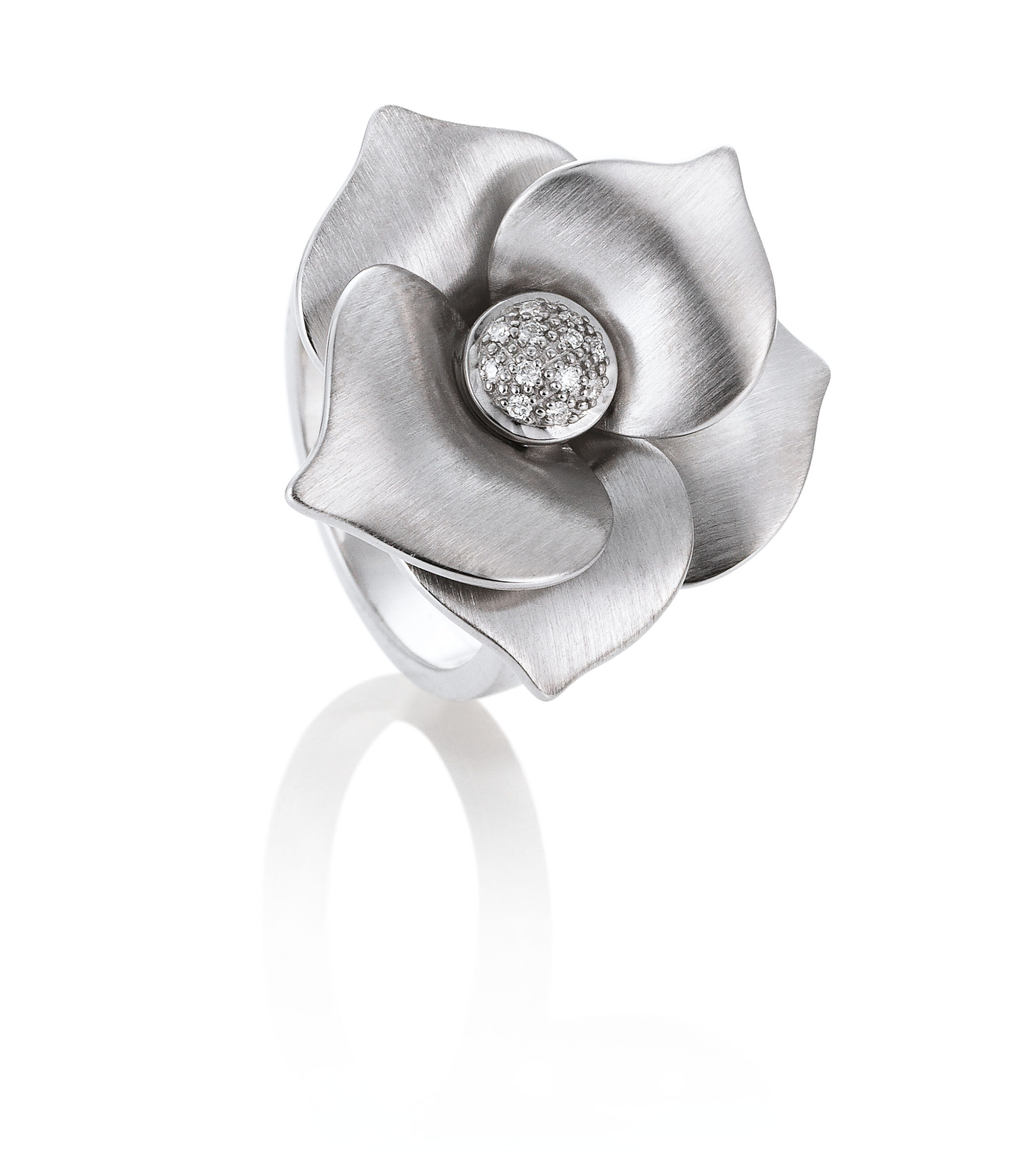 41/05419-0 925/- Rhodium Plated Diamond Silver Ring, 0.066 Ct H/Si