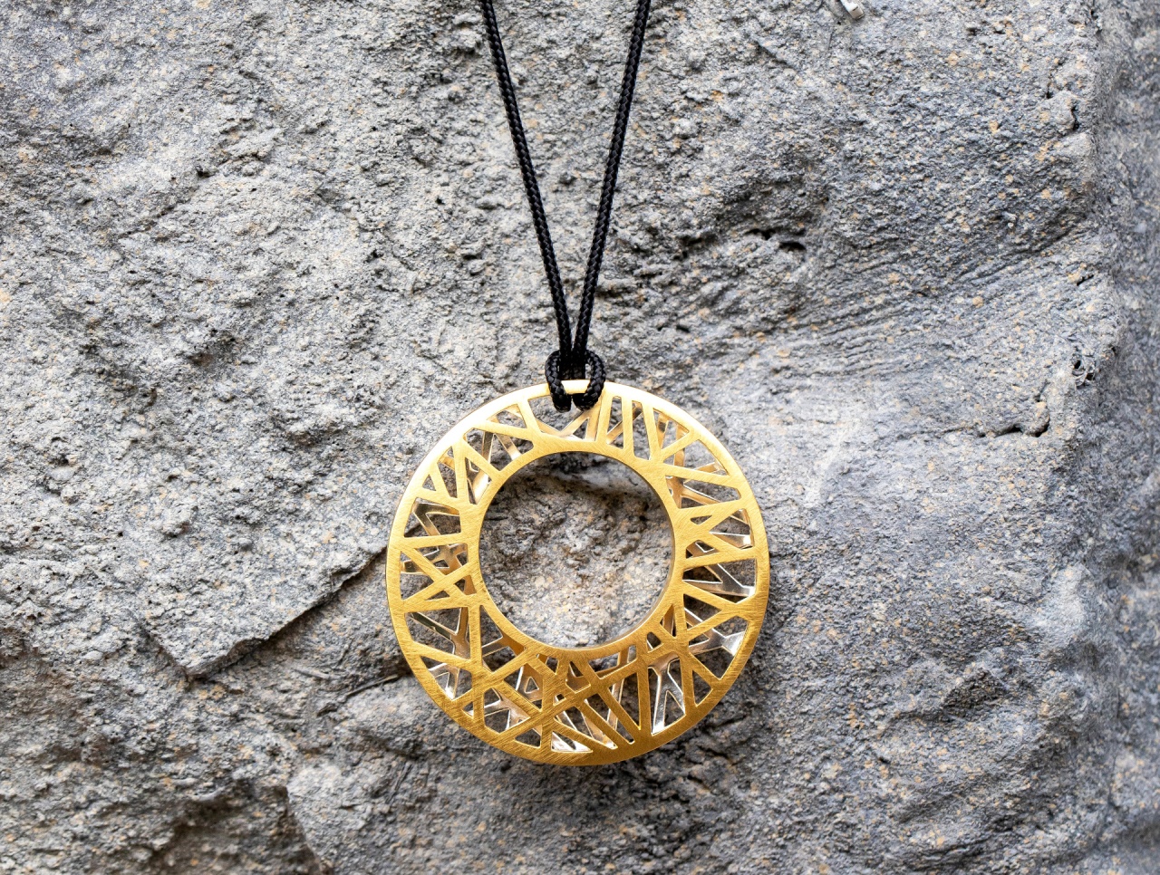 Bird Nest’ – a perfect expression of stylish jewelry art. Delicate, straight branches, framed in a circle, combine to create unique jewelry statements. As a sparkling homage to the last 50 years, we have recreated a tried and tested, yet unique design that will be remembered. Based on the structure of a bird’s nest and inspired by the basic idea of an origin story, the pieces of jewelry made of radiant and gold-plated 925/- sterling silver skillfully impress with their cleverly designed design language. The result is a necklace, a pendant and earrings, which become masterpieces of jewelry art thanks to their bicolor appearance. All pendants are delivered without a corresponding accessory chain unless otherwise noted. All bastian inverun jewelry pieces are delivered including matching jewelry packaging. Dimensions: Diameter of the entire pendant: 6 cmDiameter of the cut-out detail: 3 cm