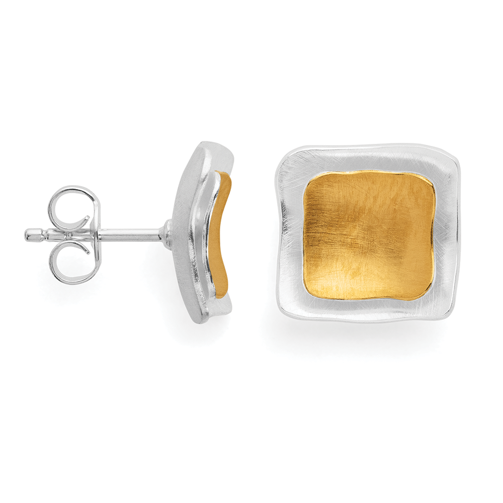 46990 925 sterling silver stud earrings, partially gold-plated, matte finish
