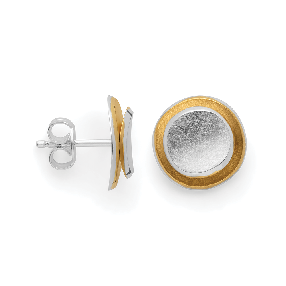47840 925 sterling silver stud earrings, partially gold-plated, matte finish