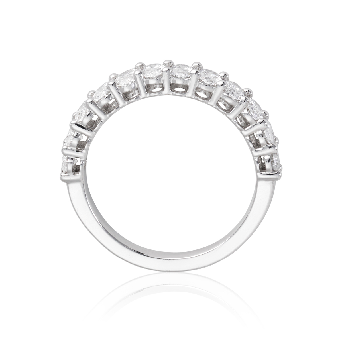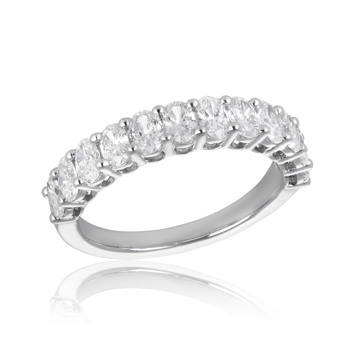 5285W-18W 750/- White Lab Grown Oval 12 = 1.20ct F/G VS Claw Set Wedding Band