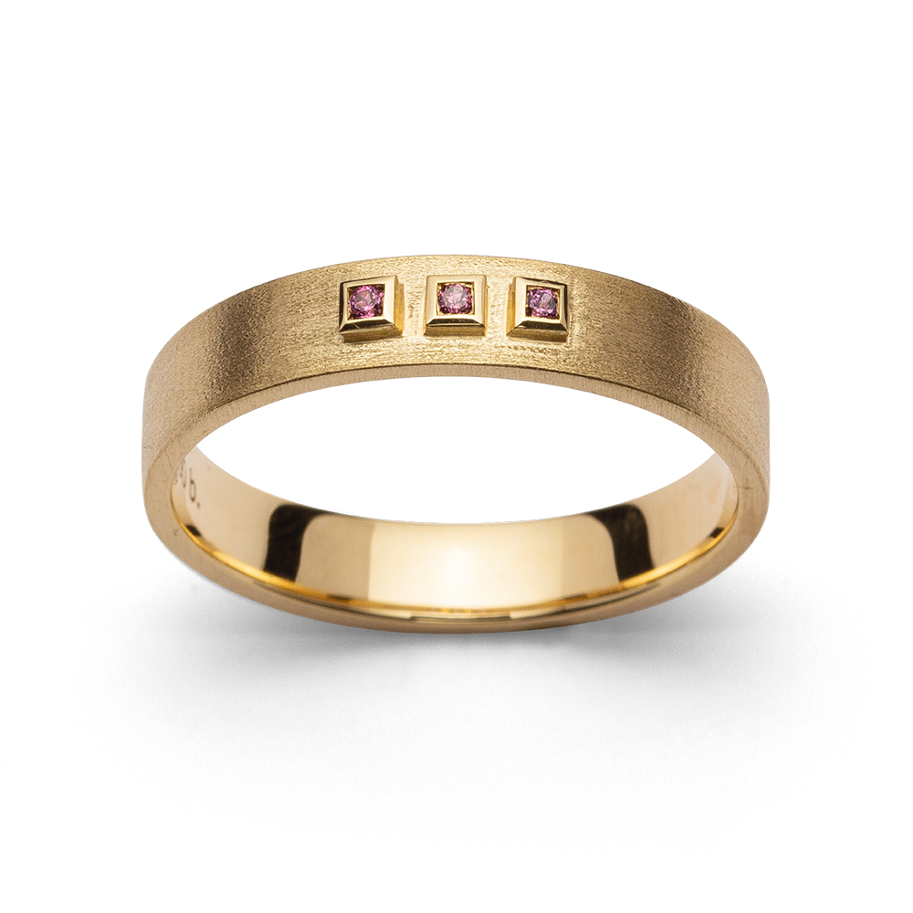 37805 750/- Bastian Ring matt/busted, rhodolite 0.03ct