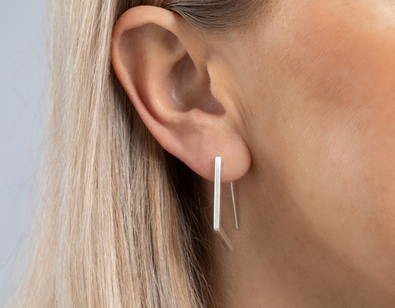 This modern creole made of matt 925/- sterling silver impresses with a stylish, angular design. Whether for everyday wear or a very special occasion – with these sporty, elegant earrings you can give your look a strong yet feminine expression. Hoop earrings are currently celebrating their mega comeback, but can also look back on a long history and tradition. They were once worn in the left ear by sailors and, provided with initials, were considered a kind of life insurance and means of identification. Nowadays, hoop earrings are a highly individual, trend-oriented accessory. Whether models made of yellow or rose gold-plated 925/- sterling silver or sporty-elegant ones made of pure 925/- sterling silver, hoop earrings are a current must-have and an indispensable part of the jewelry boxes of trend-oriented women. Scroll through the bastian inverun hoop earrings range and be inspired by the numerous models, sizes and variations. Whether matted, polished, brushed or as a combination – the current bastian inverun basics have something for everyone. Whether casual, feminine-elegant or business-like, discover the most beautiful trends for your ears, emphasize your individual look and combine as you please! All bastian inverun jewelry pieces are delivered including matching jewelry packaging.Dimensions:Width of the front decorative element: 0.2 cmWidth of the entire earring (widest point): 2.5 cm Length: 3.6 cm