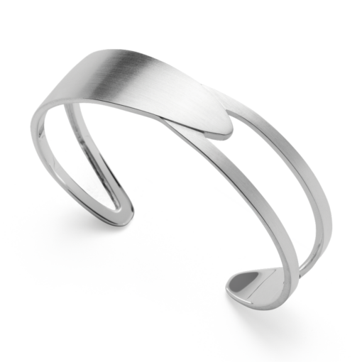 This enchanting designer bangle made of matt 925/- sterling silver impresses with its unique shape and high-quality workmanship in manufacturing quality. The cut-outs ensure a particularly striking appearance of this timelessly elegant piece of jewelry. Whether for everyday life or a special event – the jewelry statement created by Düsseldorf designer Nadine Resch impresses for every occasion! A sensual, curved shape and a consistently characteristic design signature characterize the jewelry creations of the freelance designer Nadine Resch, who lives in Düsseldorf. Her multifaceted designs always provide fresh inspiration and rebel against the uniformity of today. All bastian inverun pieces of jewelry are delivered including matching jewelry packaging. Dimensions: Height of the hoop: 5 cmWidest part of the strands: 1.5 cmNarrowest point of the strands: 0.3 cmInner diameter: 6.4 cmOpening: 3.2 cm