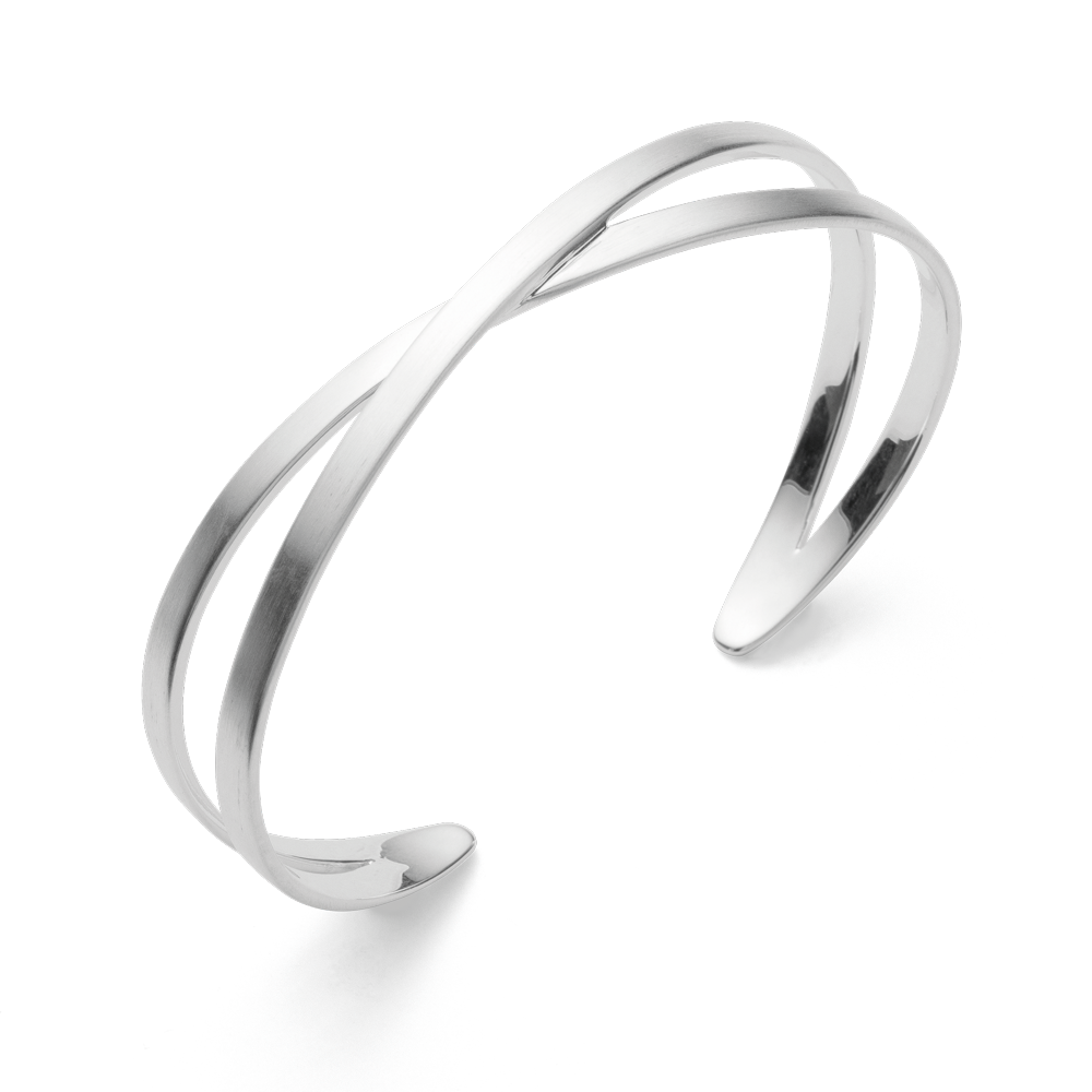 Matted 925/- sterling silver meets a hand-finished bangle with a crossed design on the top. A characteristic piece of designer jewelry that can be used in a variety of ways and is an elegant eye-catcher on the wrist. Whether for everyday life or for a special occasion – this bracelet impresses for every occasion! All bastian inverun pieces of jewelry are delivered including matching jewelry packaging. Dimensions: Height of the hoop: 5.5 cmWidth of strands: 0.4 cm Inner diameter: 6.9 cm Opening: 2.7 cm