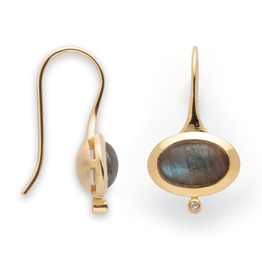 925/- earrings, gp matt/pol., labradorite, topaz