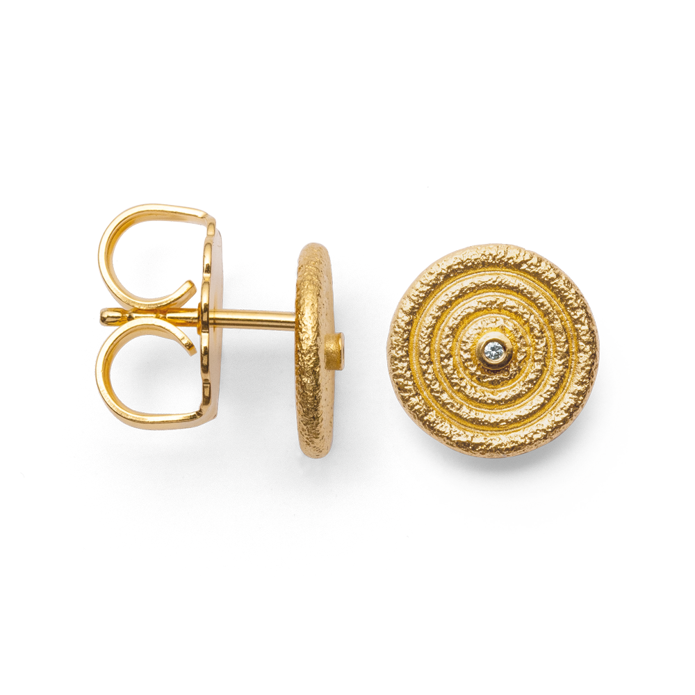 “The Round ‘n’ Round Collection” – a brand new, geometrically inspired design line in a ring look from the pen of designer Thomas Mayer. Matted and brushed 925/- sterling silver with high-quality 18 carat gold plating is crowned with sparkling and brilliant-cut diamonds totaling 0.01ct (W-SI). Available with matching pendant. The master goldsmith Thomas Mayer, who lives in Rottenburg am Neckar, used his years as a journeyman to gain know-how and experience in various workshops. He loves experimenting with different materials, surfaces and natural impressions in his workshop. With this experience he is able to design sophisticated pieces of jewelry with his own signature. “For me, nature is the measure of all things.” (Thomas Mayer) All bastian inverun pieces of jewelry are delivered including appropriate jewelry packaging. Dimensions: Diameter: 1 cm