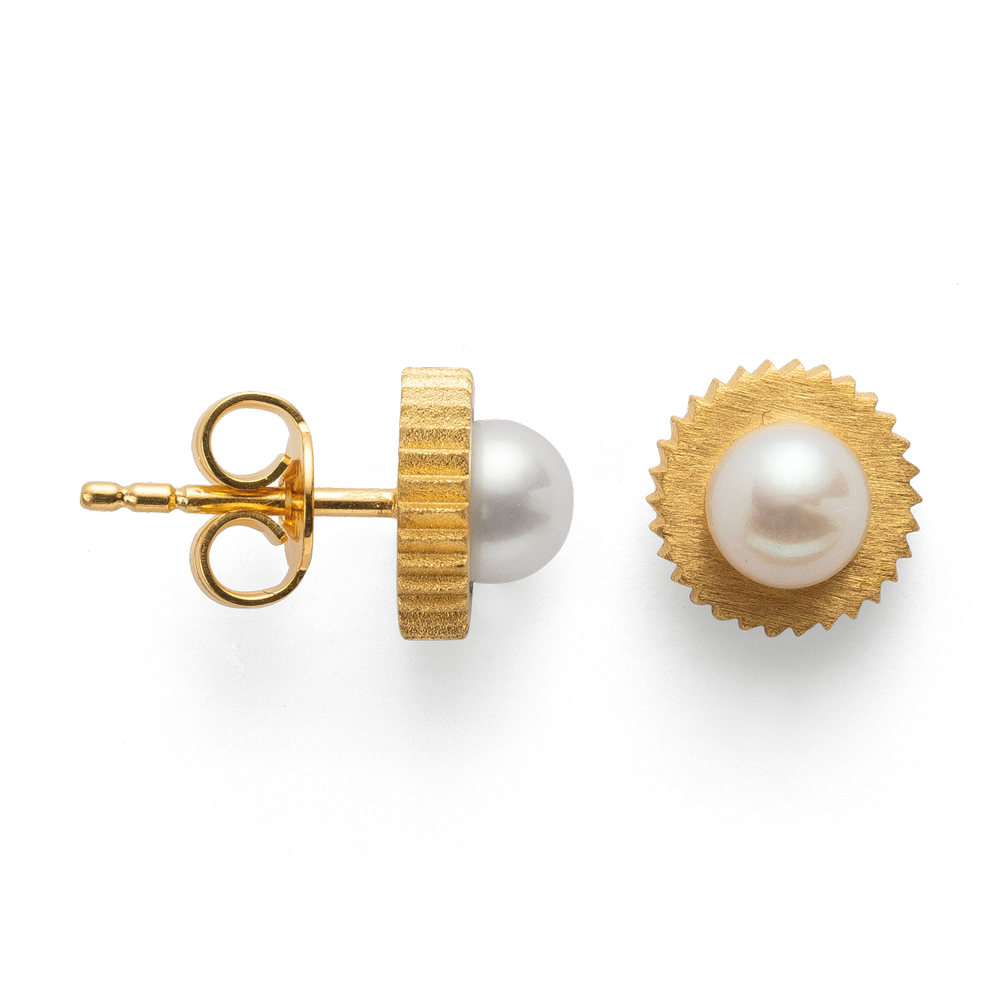 A consistently characteristic surface structure meets a radiant white pearl weighing 1.63 ct. Made from gold-plated 925/- sterling silver and inspired by the look of a goldsmith’s tool, the designer Thomas Mayer enchants with his own signature. Available with matching tag. The master goldsmith Thomas Mayer, who lives in Rottenburg am Neckar, used his years as a journeyman to gain know-how and experience in various workshops. He loves experimenting with different materials, surfaces and natural impressions in his workshop. With this experience he is able to design sophisticated pieces of jewelry with his own signature. “For me, nature is the measure of all things.” (Thomas Mayer) All bastian inverun pieces of jewelry are delivered including appropriate jewelry packaging. Dimensions: Diameter: 0, 9 cm Diameter of Pearl: 0.5 cm