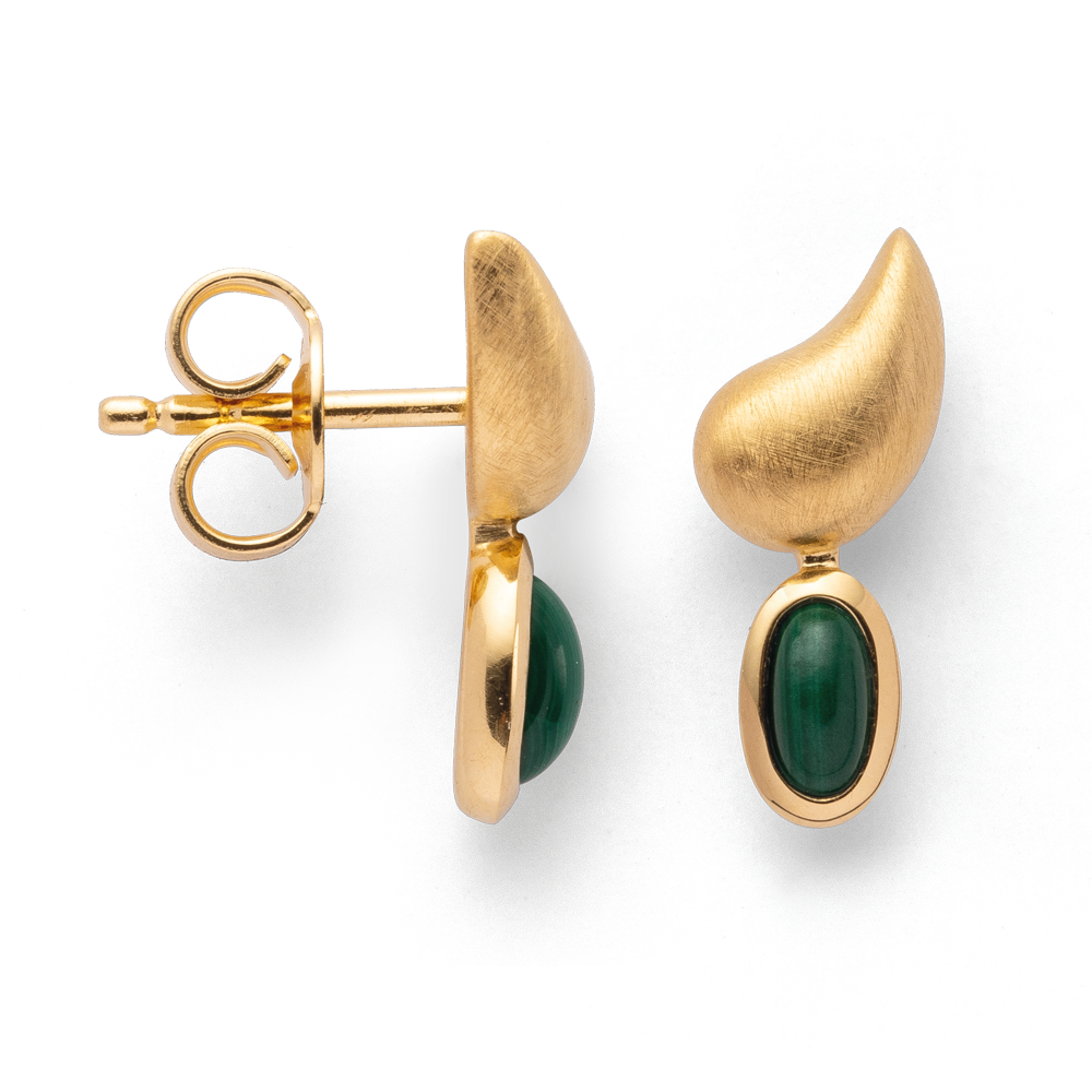 41990 925 sterling silver stud earrings, e.g., scratch-matte/polished, malachite
