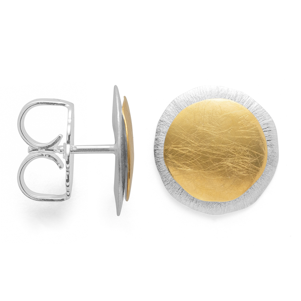 43381 925 sterling silver stud earrings, partially gold-plated, rhodium-plated, matt/brushed