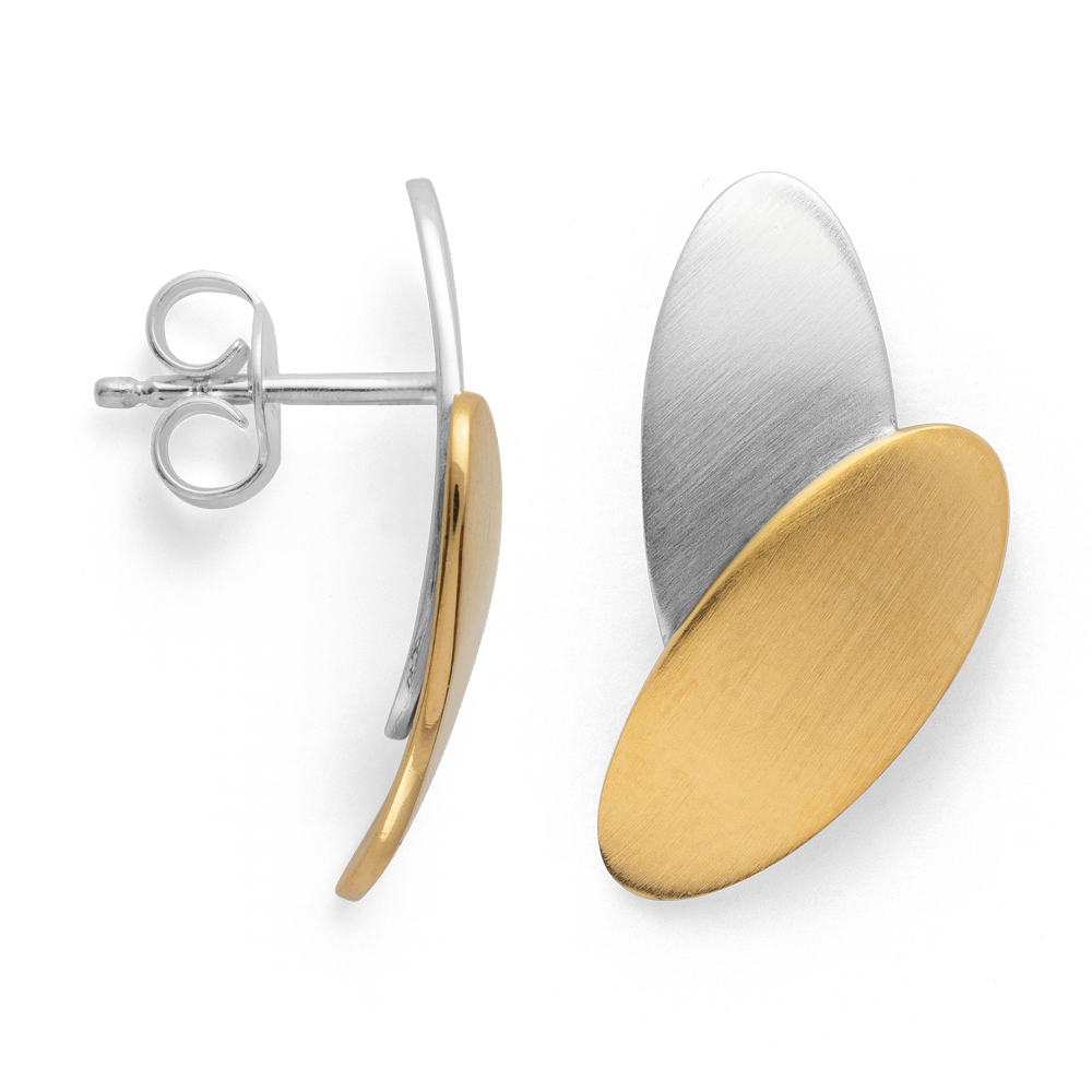 42741 925 sterling silver stud earrings, part gilded, rho. matt.