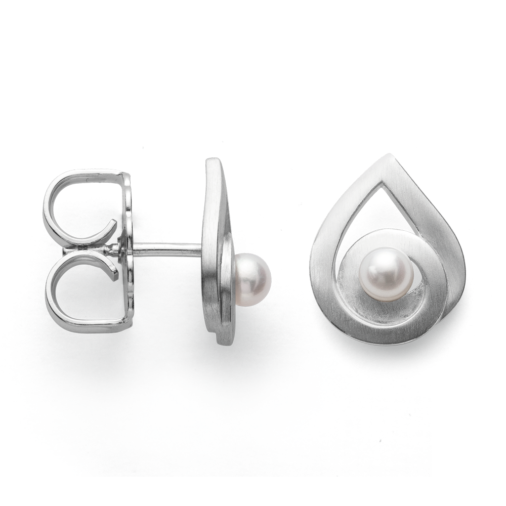 41891 925 sterling silver stud earrings, rho. matt., cultured pearls 0.57ct