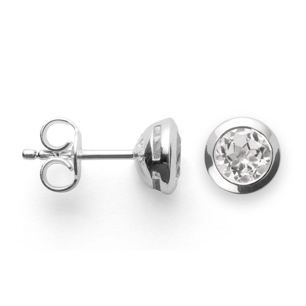 Radiant 925 sterling silver in combination with a white topaz (1.20 ct in total) in a round normal cut gives these classic stud earrings with a polished surface that certain something. Ideal in combination with the matching pendant and ring. A sensual, curved shape and a consistently characteristic design signature characterize the jewelry creations of the freelance designer Nadine Resch, who lives in Düsseldorf. Her multifaceted designs always provide fresh inspiration and rebel against the uniformity of today. All bastian inverun jewelry pieces are delivered including appropriate jewelry packaging. Dimensions: Diameter: 0.65 cm Diameter of the topaz: 0.5 cm