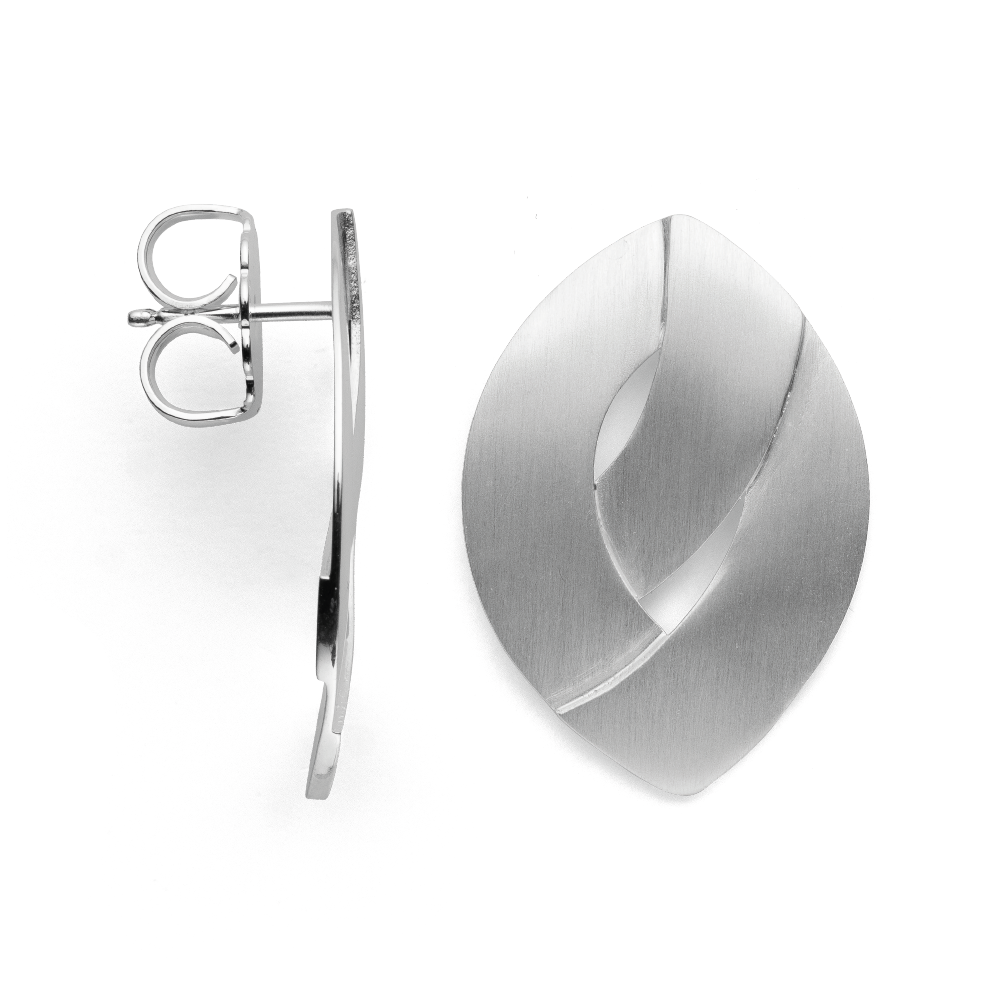 Pointed design stud earrings “Nordic Heritage” made of brushed 925/- sterling silver. A special design detail is the loop-like shape of the striking earrings, which come with a large ear nut for a perfect and secure fit on the ear. Available with a matching pendant, ring and bangle. The freelance graduate designer Dr. from Pforzheim. Sabine Brandenburg-Frank creates pieces of jewelry that are contemporary and equally timeless. The designer Brandenburg-Frank does not want to imitate natural forms, but rather reflect the basic geometric structure. The charismatic design and the exceptionally contrasting feel of her jewelry reflect the pure joy of life. They combine distinctiveness, aesthetics and innovation and appear excitingly calm. All bastian inverun pieces of jewelry are delivered including matching jewelry packaging. Dimensions: Length: 2.9 cm Width: 2.0 cm