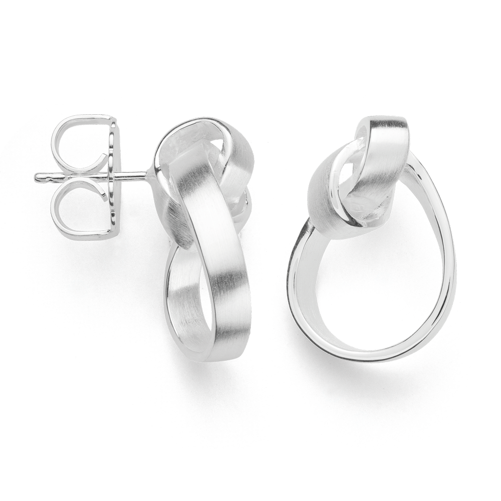 Sophisticatedly twisted and dynamically curved: These matt stud earrings made of 925/- sterling silver impress with their valuable, solid workmanship and a characteristic shape. The dynamically shaped design earrings look perfect in combination with the matching pendant. All bastian inverun pieces of jewelry are delivered including appropriate jewelry packaging. Dimensions:Width of the ear stud (widest point): 1.5 cm Length: 2 cm