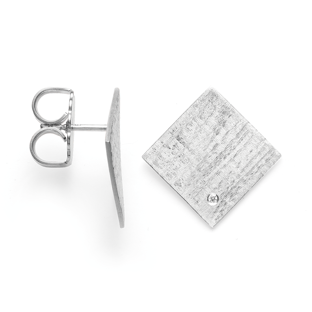 925/- earstud, rho. satin/brushed, dia. 0,02ct W-SI