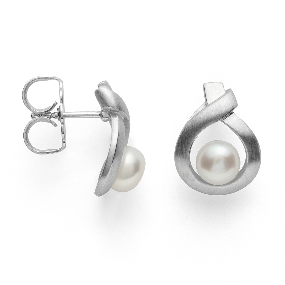 These enchanting, rhodium-plated (tarnish protection) ear studs in an attractive teardrop shape impress with a centrally placed white cultured pearl (2.12ct in total) and the dynamic shape with cut-out details. A valuable design from the pen of designer Catherine Niegel with the makings of an absolute favorite piece of jewelry. Available with a matching pendant. Catherine Niegel is a goldsmith and qualified designer. She has been working as a freelance designer at home and abroad since 2002. Her to-the-point, emotional design makes each of her works an absolute favorite piece of jewelry. “Good design is like the icing on the cake.” (Catherine Niegel) All bastian inverun jewelry pieces are delivered including matching jewelry packaging. Dimensions: Length: 1.5 cm Width: 1.2 cm Diameter of the pearl: 0.6 cm