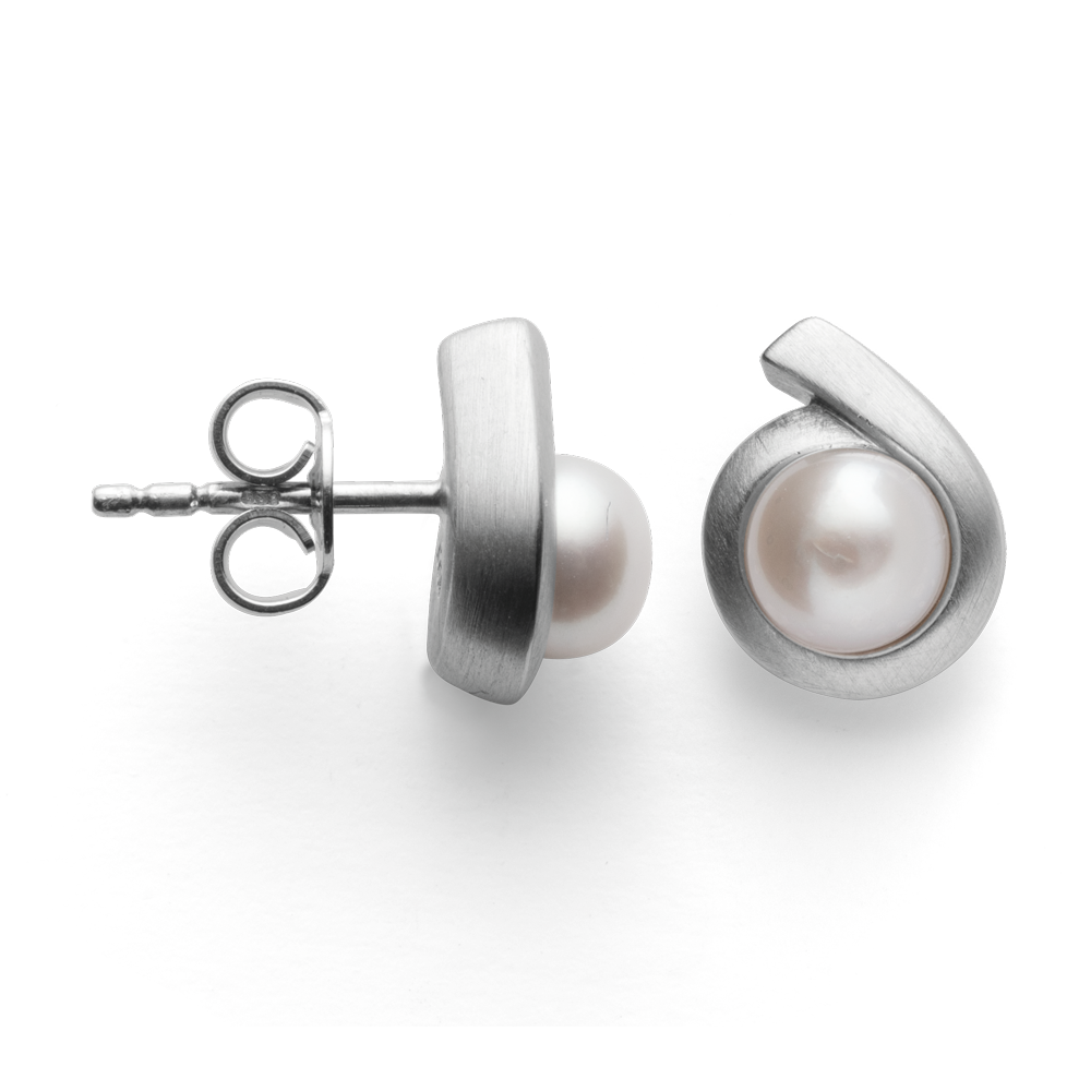 39011 925 sterling silver stud earrings, rhodium-plated, matte finish, cultured pearls 2.64ct