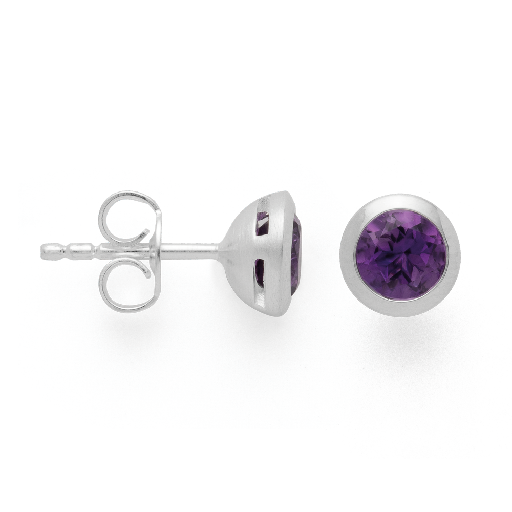 45051 925 sterling silver stud earrings, rhodium matte/polished, amethyst 1.24