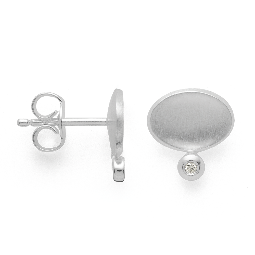 45321 925 sterling silver stud earrings, rhodium matte/polished, 0.02ct W-SI