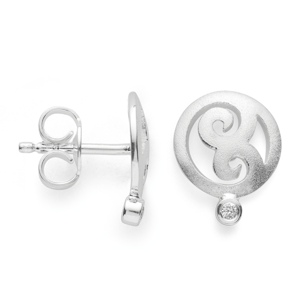 43610 925 sterling silver stud earrings, sand matte finish, diamonds 0.02ct W-SI