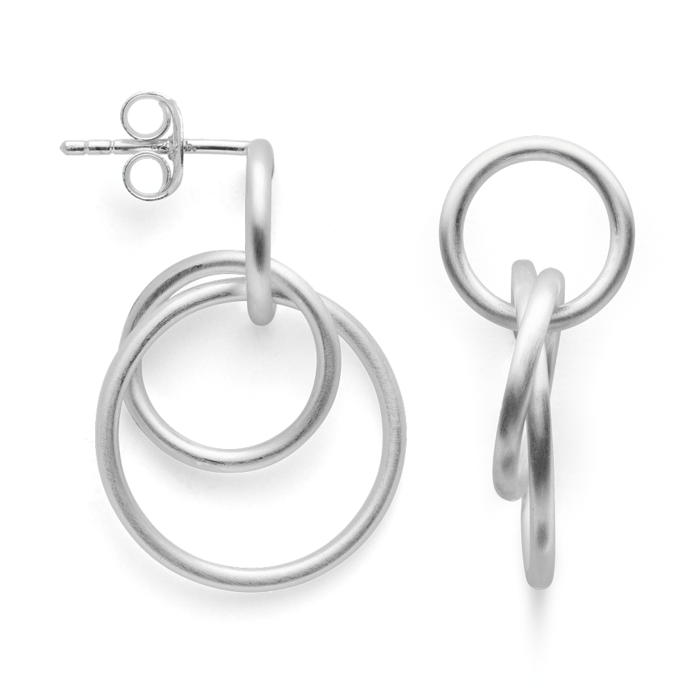 Modern and stylish at the same time – these magical stud earrings made of matted 925/- sterling silver impress with three interconnected, circular jewelry elements. An airy, light jewelry design that can also be combined with item 45500 and worn asymmetrically. Also available in gold plated. All bastian inverun pieces of jewelry are delivered including matching jewelry packaging. Dimensions: Length: 3 cm Diameter of the large circle: 2 cm