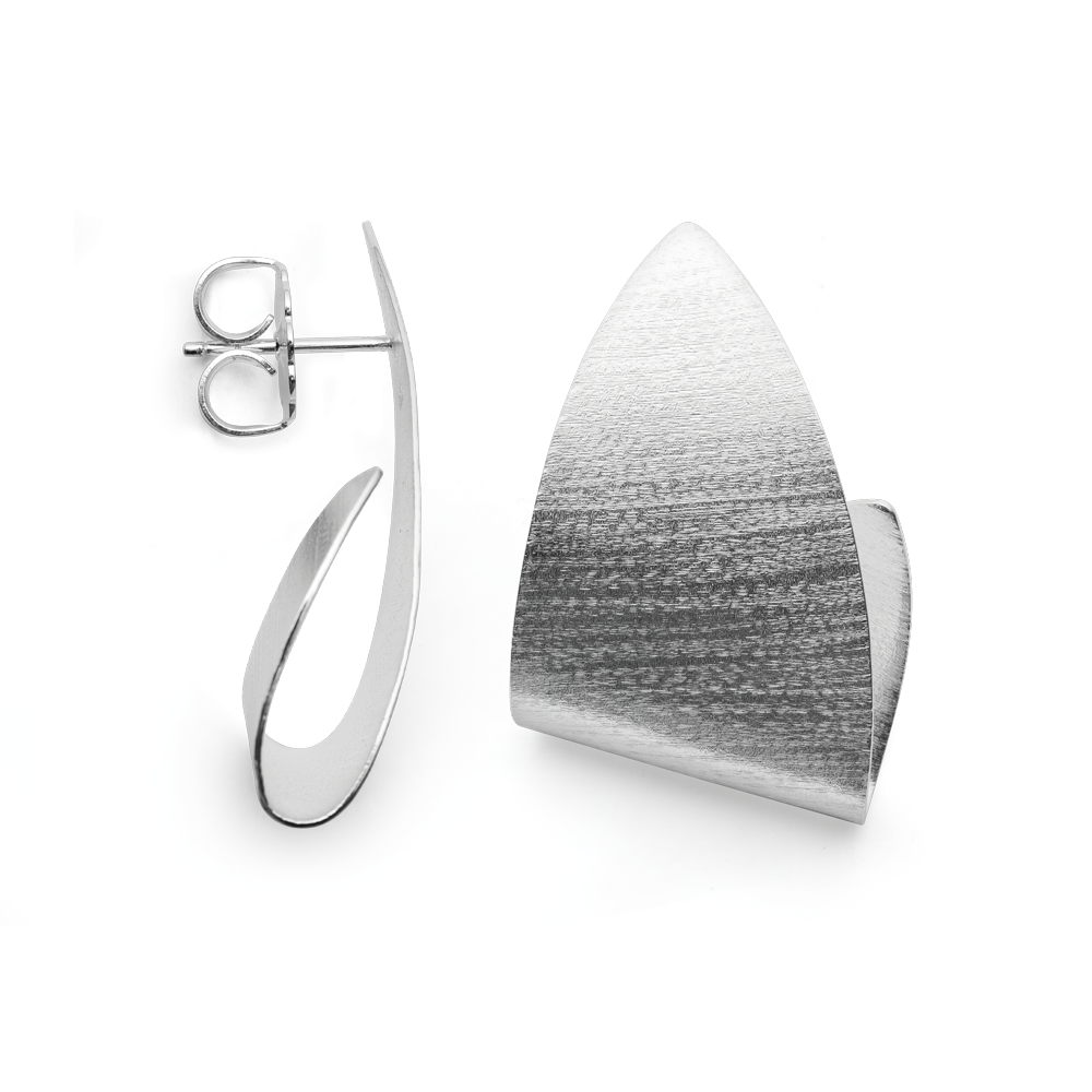 “Lovely Loop Collection” – the new design line from bastian inverun impresses with a characteristic surface structure and a curved shape. Matted 925/- sterling silver with polished edges forms unique ear studs from the pen of designer Dietmar Sebastian. Available with matching pendant and ring. The most memorable thing about the jewelry from Osnabrück-based designer Dietmar Sebastian is the surface design. When he started making his jewelry with rough surface structures in the 90s, it was a small sensation. Among the designers, Dietmar Sebastian is one of the minimalists, because omission is crucial for him. For him there are no decorative applications in jewelry, only the pure form counts. All bastian inverun pieces of jewelry are delivered including matching jewelry packaging. Dimensions: Length: 3.6 cm Width: 2.5 cm