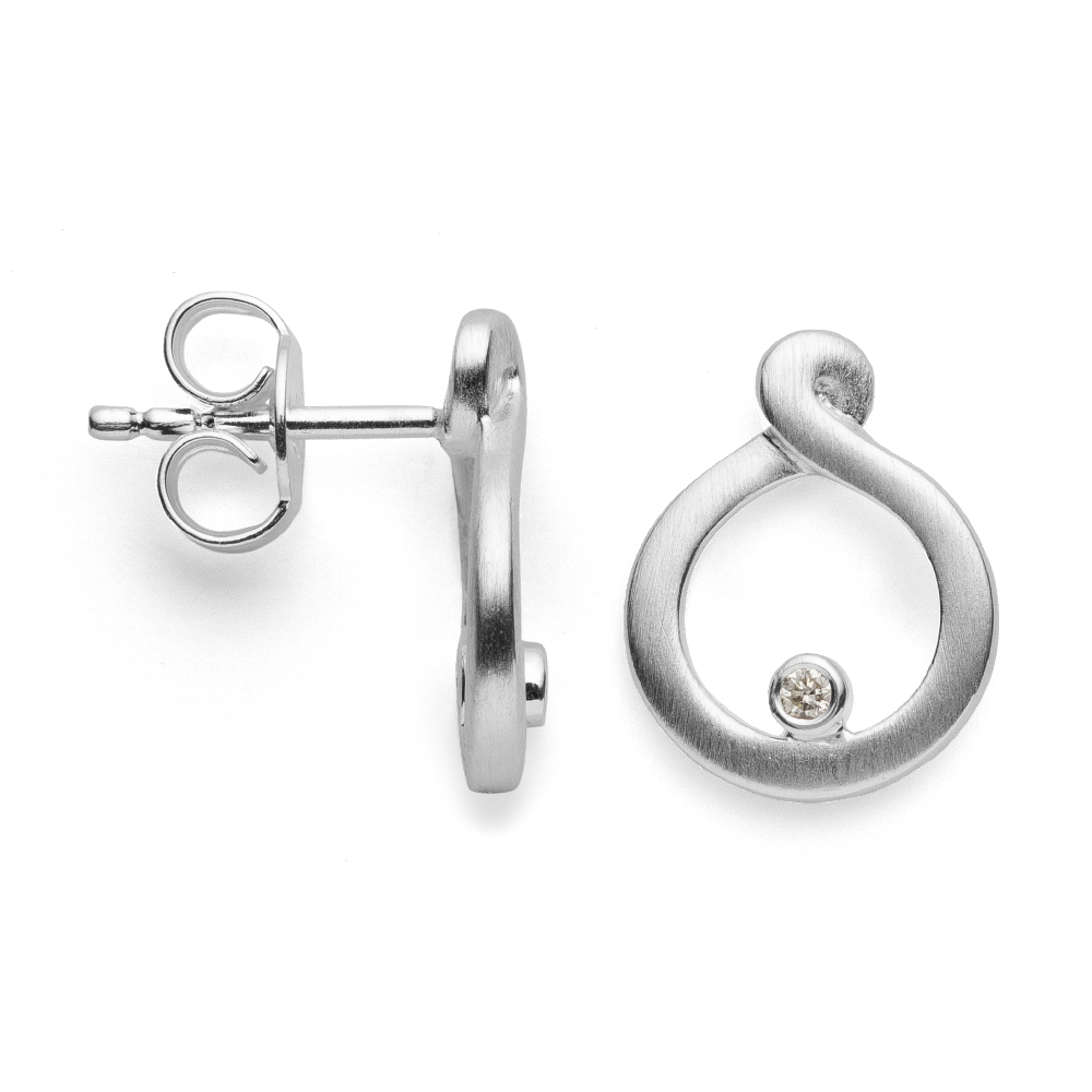 A delicate yet slightly twisted design meets sparkling brilliant-cut diamonds (0.02ct W-SI). These finely handcrafted designer earrings made of matt 925/- sterling silver can be perfectly combined with both a sporty and an elegant outfit. Available in a set with an accompanying pendant. Catherine Niegel is a goldsmith and qualified designer. She has been working as a freelance designer at home and abroad since 2002. Her to-the-point, emotional design makes each of her works an absolute favorite piece of jewelry. “Good design is like the icing on the cake.” (Catherine Niegel) All bastian inverun pieces of jewelry are delivered including appropriate jewelry packaging. Dimensions: Length: 1.3 cm Width: 1.0 cm