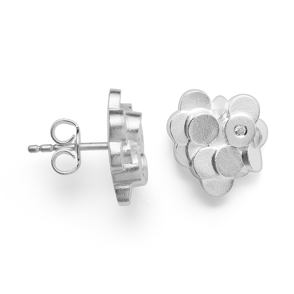 Numerous geometrically inspired basic shapes come together to create stylish stud earrings designed by the Reiffert brothers. The asymmetrically arranged diamond with 0.02ct crowns the design made of matt 925 sterling silver in a special way. Bold, clear and uncompromising – jewelry by Philipp and Dan Reiffert. The brothers create jewelry that stays in your memory. The two goldsmiths are inspired by the little things in life. This creates unique pieces of jewelry, made for people, worn with love. All pendants are delivered without the corresponding accessory chain unless otherwise noted. All bastian inverun pieces of jewelry are delivered including matching jewelry packaging. Dimensions: Width: 1.8 cm Height: 1.8 cm