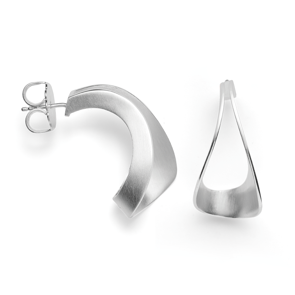 “The Curvy Rebel Collection” – the new design line by bastian inverun with a consistently feminine, curved shape. Matted 925/- sterling silver, polished on the edges, forms beautiful earrings designed by the Norwegian designer Kaja Gjedebo. For particularly high wearing comfort and a perfect fit on the ear, these ear studs are supplied with a large ear nut. Kaja Gjedebo is the name of the Norwegian designer of this year’s collection highlight by bastian inverun. With her design philosophy she always expresses her connection to nature. The jewelry designer relies on basic shapes that can be duplicated, but also dismantled and reassembled to create small sculptures for the body. This is how she lives out her passion for creating works of art that emphasize the beauty and personality of the wearer. “I am inspired by my morning walks in the forest on my doorstep, the architecture and the urban details. The endless possibilities of folding a piece of paper never cease to fascinate me.” (Kaja Gjedebo) All bastian inverun pieces of jewelry are delivered with matching jewelry packaging. Dimensions: Width: max. 1.5cm Height: approx. 2.80cm Depth (side view): approx. 2.6cm with plug