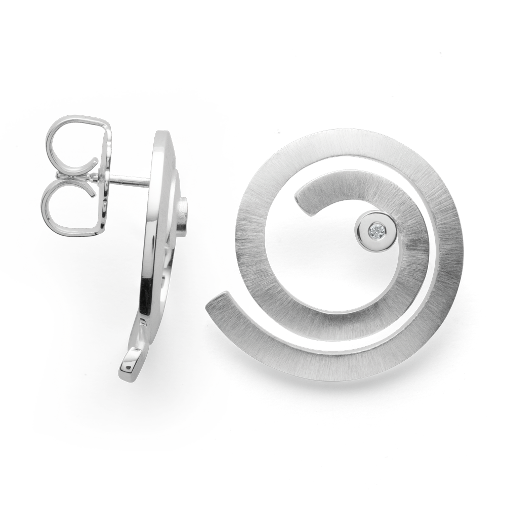 Sparkling diamond stud earrings from the “Magic Star” collection. 925/- sterling silver shaped into a hint of a snail with a brushed surface surrounds the two sparkling diamonds (0.02ct in total, W-SI) with a polished setting. Perfect in combination with matching ring and pendant from the same collection. For particularly high wearing comfort, these ear studs come with a large ear nut. It is the play of colors that is fascinating. Sparkling diamonds have always brought moments of happiness. At a depth of around 150 km, the king of gemstones, a cubic modification of carbon, is created under pressure and heat. Due to their special hardness, great color dispersion and extremely high refraction of light, diamonds have always held a special position among gemstones. The word diamond is derived from the Greek word “adamás”, which means “invincible”. This is one of the reasons why bastian inverun relies on this extraordinary natural treasure. All bastian inverun pieces of jewelry are delivered including appropriate jewelry packaging. Dimensions: Length: 2.2 cm Width: 2.1 cm