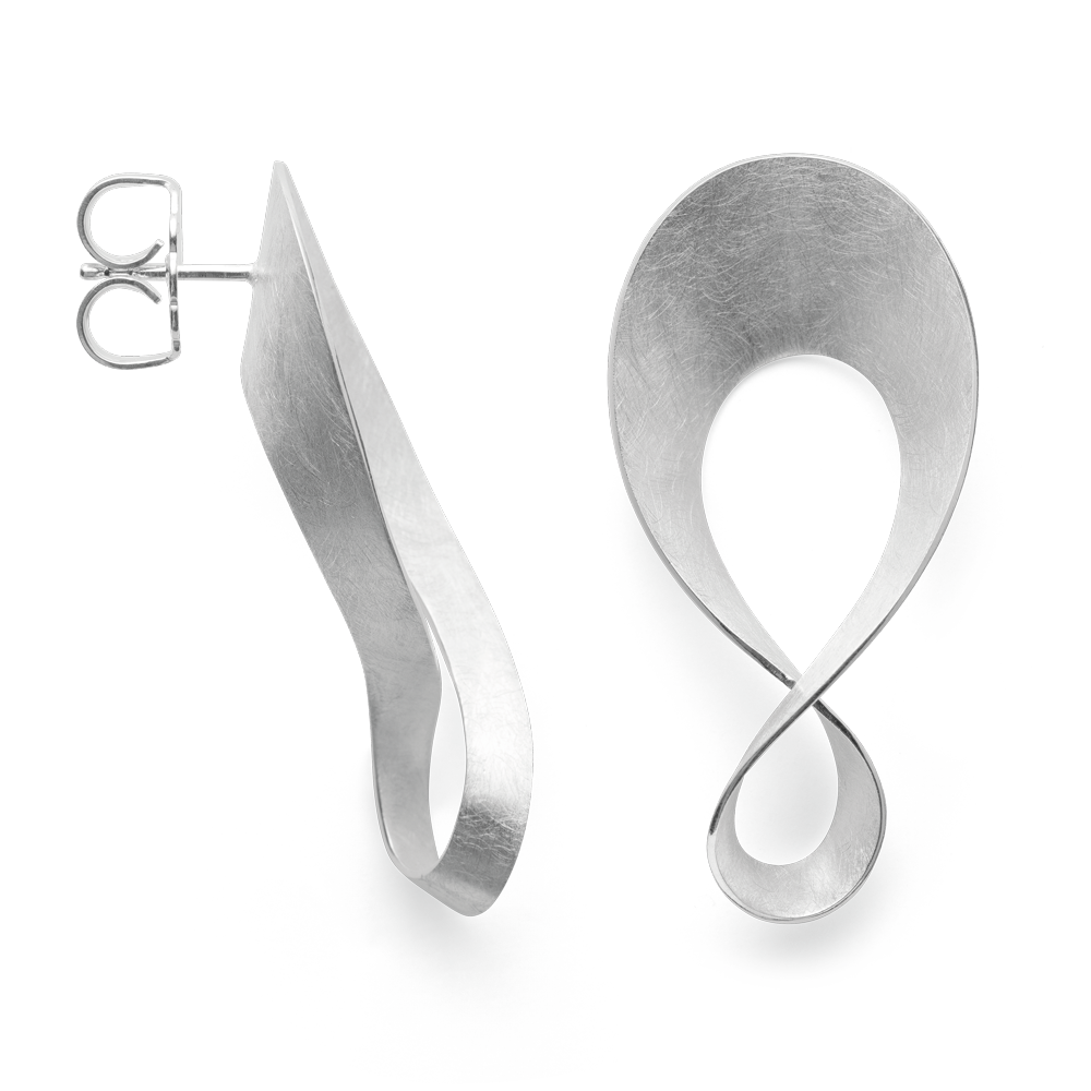 Striking stud earrings with an eye-catching guarantee – these earrings impress with their feminine, curved shape. Matted 925/- sterling silver with polished edges is formed into distinctive ear studs designed by designer Nadine Resch. For a particularly high level of comfort and a perfect fit on the ear, these stud earrings are supplied with a large ear nut. A sensual, curved shape and a consistently characteristic design signature characterize the jewelry creations of the freelance designer Nadine Resch, who lives in Düsseldorf. Her multifaceted designs always provide fresh inspiration and rebel against the uniformity of today. All bastian inverun jewelry pieces are delivered including appropriate jewelry packaging. Dimensions: Total length: 4.4 cm Widest point: 2.2 cm